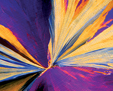 Zwei Kristallformen von Cholesterylbenzoat, der ersten flüssigkristallinen Substanz, die vom österreichischen Botaniker und Chemiker Friedrich Reinitzer 1888 entdeckt. Mit dieser Entdeckung startete Otto Lehmann die Erforschung von Flüssigen Kristallen, die wir heute beim Blick auf LCD Display, Monitor und TV oft viele Stunden am Tag unbewusst betrachten. |